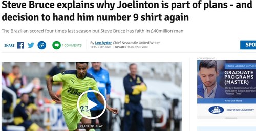 Oyuncusuna sarı lacivertlilerin ilgisinin olup olmadığı sorulurken, Bruce, “Joelinton 9 numarada kalacak. Callum 13 numarayı giyecek. Benim için şu anda en zor şey kadro oluşturmak ancak umarım Joelinton, yeni bir meydan okuma için kendini hazır hissediyordur.” dedi.