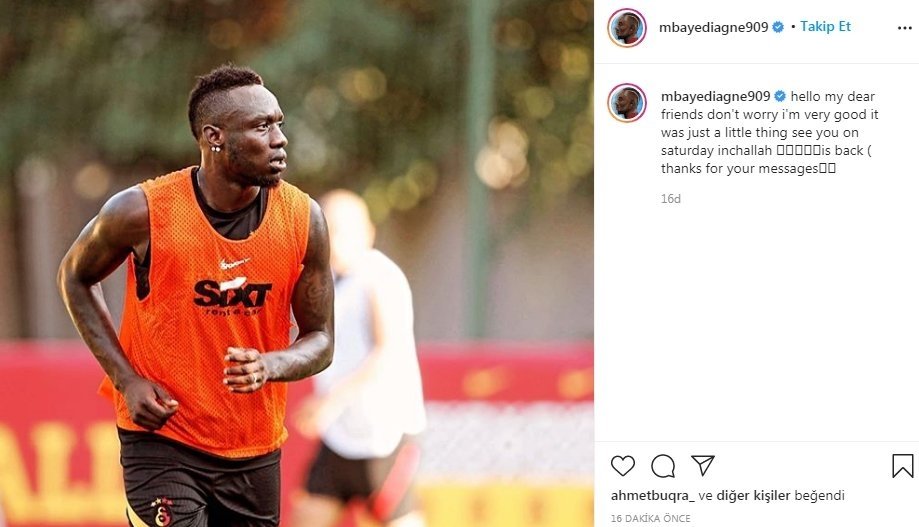 Senegalli yıldız yaptığı paylaşımda “Merhaba sevgili arkadaşlarım. Merak etmeyin. Çok iyiyim. Sadece küçük bir şeydi. Cumartesi günü buluşacağız inşallah” ifadelerini kullandı.