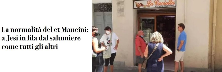 EURO 2020’de İtalya ile şampiyonluk yaşayan Roberto Mancini, ailesini ziyaret etmek için memleketine gitti. Anne ve babasının yaşadığı sıhhat problemleri nedeniyle Jesi Kasabası’na giden deneyimli teknik adam, şarküteri kuyruğunda sıra beklerken görüntülendi. İtalyan basınına yansıyan haberlerde, tecrübeli çalıştırıcının bu mütevazı tutumları büyük takdir gördü.