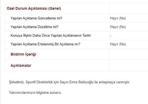 Son dakika: Fenerbahçe Emre Belözoğlu’yu KAP’a bildirdi!