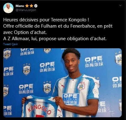 Yaz transfer devri çalışmalarını sürdüren Fenerbahçe savuma çizgisine destek yapmak için kolları sıvadı. Listesinde birçok isim bulunan sarı-lacivertliler, aradığı stoperi İngiltere’de buldu. Manu Lunjon’un paylaştığı bilgilere nazaran Fenerbahçe, Feyenoord altyapısından yetişen ve Monaco’dan 20 milyon euro bonservis bedeli karşılığında Huddersfield’a transfer olan Terence Kongolo’ya satın alma opsiyonlu kiralama teklifi yaptı.