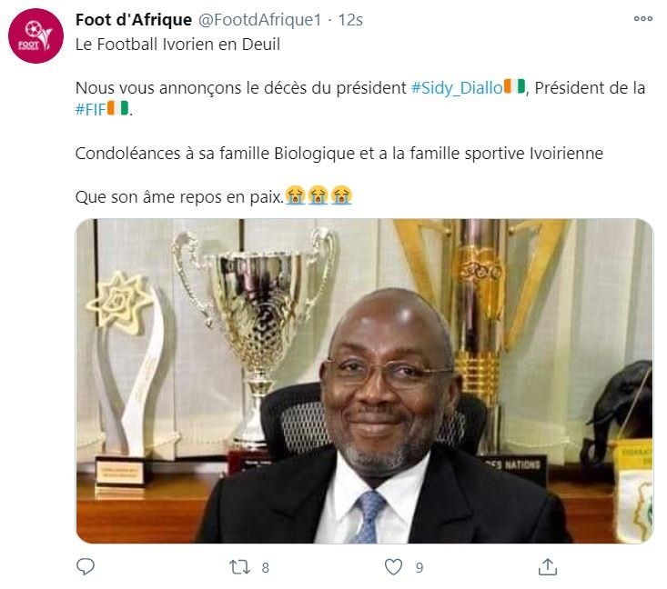 Fildişi Sahili Futbol Federasyonu Başkanı Augustin Sidy Diallo corona virüsü nedeniyle hayatını kaybetti