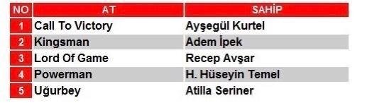 6 tayın yer aldığı kayıt listesi şöyle: Call To Victory, Handsome Hero, Kingsman, Lord Of Game, Powerman, Uğurbey.