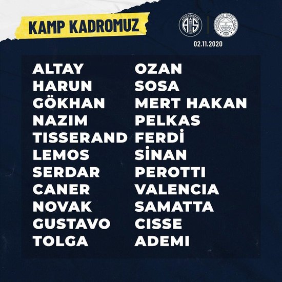 İşte Fenerbahçe’nin resmi sitesinden açıklanan kamp takımı: