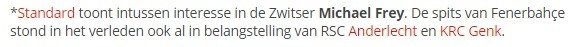 Fenerbahçe, Frey’i elinden çıkartmak için kara kara düşünürken, Belçika’dan müjdeli haber geldi. Buna nazaran Frey’e Standart Liege, Anderlecht ve Genk talip oldu.