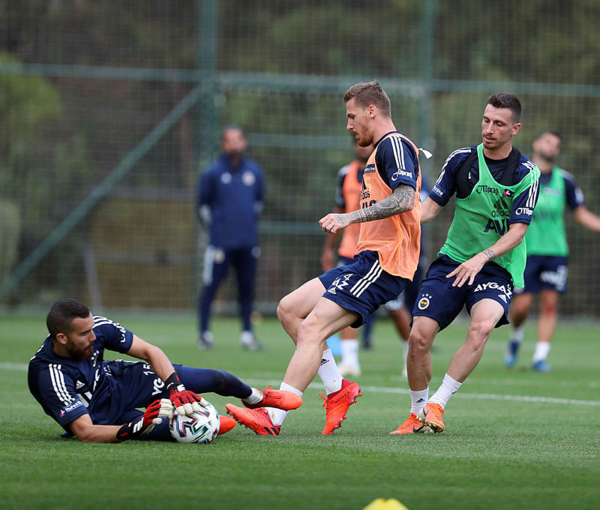 Başka oyuncular ise ısınma ve uyum hareketlerinin akabinde iki küme halinde pas çalışmaları yaptı. Egzersiz, dar alanda gerçekleştirilen çift kale maçla tamamlandı.