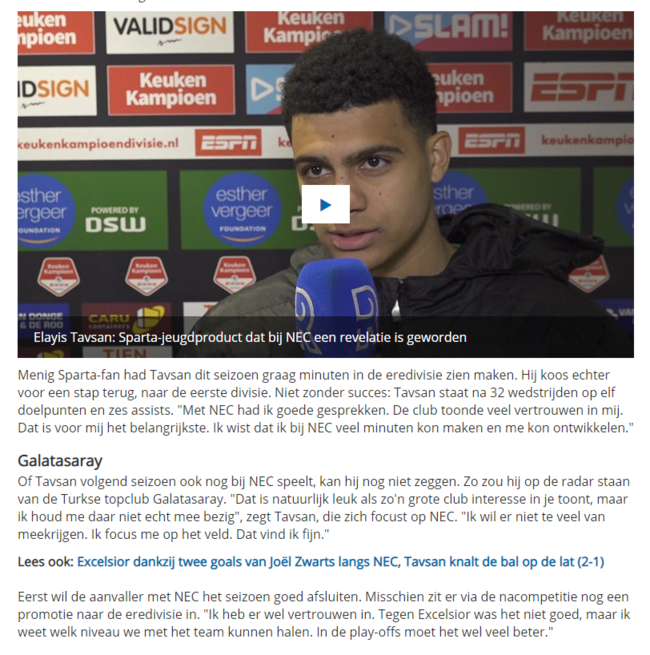 Hollanda basınına konuşan 19 yaşındaki hamleci, kendisine Galatasaray’ın ilgisinin olduğunu lakin şimdi bununla ilgilenmediğini söz etti.