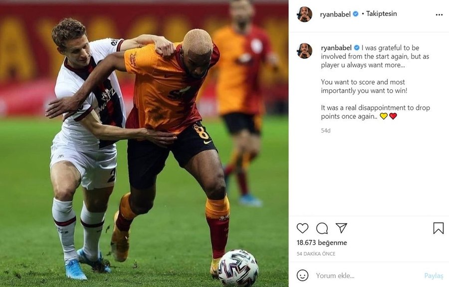 Harika Lig’in 34. haftasında alanında konuk ettiği Fatih Karagümrük’le 1-1 berabere kalan Galatasaray, şampiyonluk yarışında kritik bir puan kaybı yaşadı. Maçta sarı-kırmızılı grubun tek golünü kaydeden Ryan Babel, toplumsal medya hesabı üzerinden bir paylaşım yaptı.