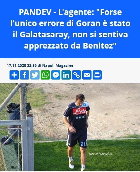 Menajerlik mesleğimin birinci seçimi Pandev’in Türkiye’de oynadığı sıralar olmuştu, benim birinci tecrübemdi. Kolay zamanalar değildi lakin sizi temin ederim Goran iyi ahenk sağlayan biridir. Lakin orada İtalya’nın eksikliğini hissetti.”