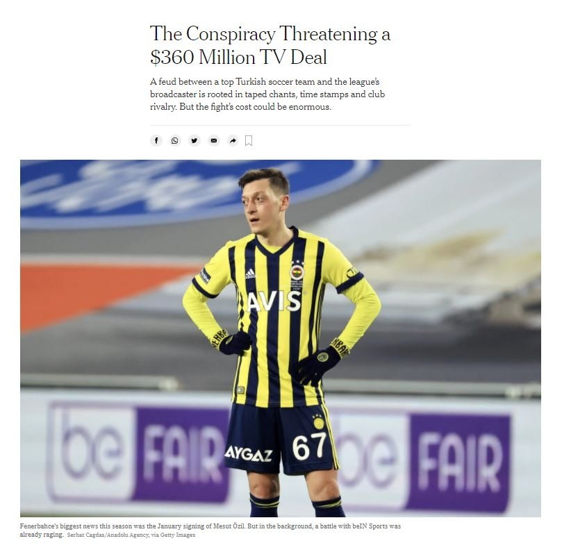 Fenerbahçe ile yayıncı kuruluş beIN Sports ortasında bir müddettir devam eden gerginlik, ABD basınından New York Times’a manşet oldu. Tarıq Panja isimli muharrir tarafından ele alınan husus için, “360 milyon dolarlık bir TV mutabakatını tehdit eden komplo” başlığı atıldı.