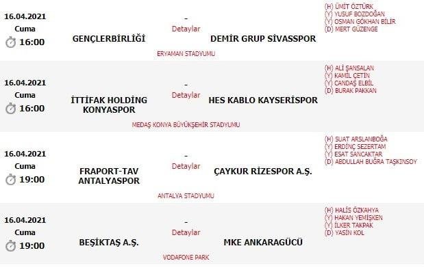 Muhteşem Lig’in 35. haftasında 16 Nisan Cuma günü oynanacak olan 4 maçın hakemleri açıklandı. Önder Beşiktaş ile Ankaragücü ortasındaki kritik gayrette Halis Özkahya düdük çalacak.