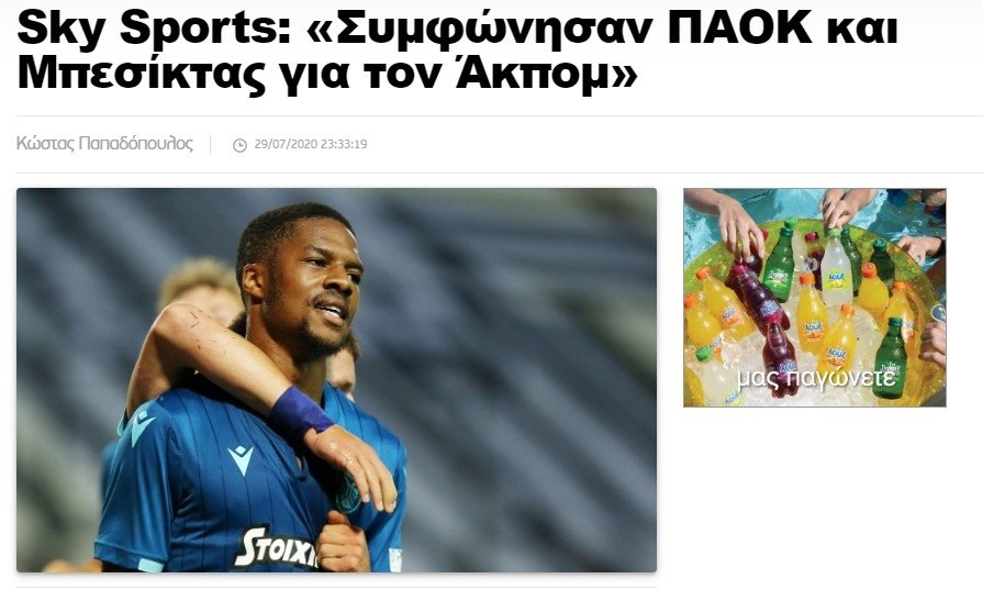 Sky Sports’un okuyucularına aktardığı bilgilere nazaran siyah beyazlılar, Akpom transferi için oyuncunun kulübü PAOK ile el sıkıştı.