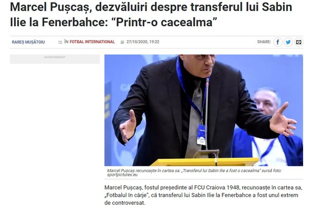 Marcel Puscas, kitabında bu transfere yer verirken geçen senaryonun tamamen blöf olduğunu anlattı.