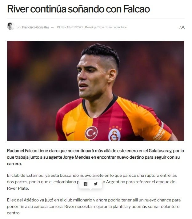 Öte yandan Falcao ve menajerinin River Plate sportif yöneticisi Francescoli ile bir dizi toplantı yaptığı ve orta yolda buluşmak istediği aktarıldı.